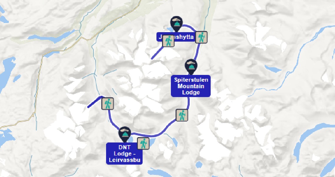 Accommodations: At Spiterstulen and Juvasshytta, you will get a private bathroom with toilet and shower. At Leirvassbu DNT-lodge, you will meet a traditional atmosphere where the rooms have bunk beds and sanitary are in the hall. Leirvassbu has some few rooms with private bathroom on request. See add-ons prices for more information.