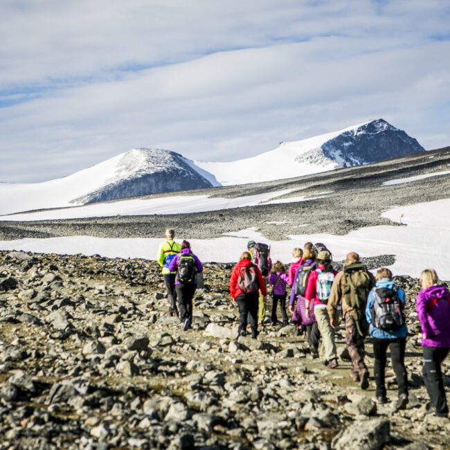 Galdhøpiggen: The hike to Galdhøpiggen includes a glacier crossing. On this part a guide will help you and you will hike attached to a rope. After crossing the glacier, you are self-guided again to hike to the summit.