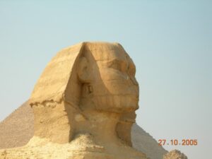 The name ‘Sphinx’ is derived from the Greek name “shesep-ankh” which means ‘the living image’. The Arabs later called the Sphinx Abu-Al Hol which means ‘the one who terrifies’. The Sphinx itself has its own interesting history. When the Necropolis was abandoned, the Sphinx got buried in sand until it was excavated around 1400 BC by Tutmosis IV – the Eight Pharaoh of the 18th Dynasty. This Pharoah fell asleep beneath the giant head and he dreamt that he would be crowned King only if he excavated the Sphinx. However, it was only in 1817 that the Sphinx’s chest was uncovered completely and the Sphinx was eventually dug out completely in 1925. Thereafter the restoration work continued intermittently till 1997 after which it stopped completely as there was a legend at that time that anyone getting close to the Sphinx would be totally destroyed. Therefore, half the Sphinx is covered in limestone and the remaining half is a solid block.